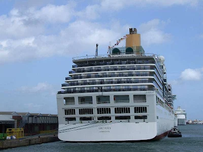 É a sua segunda passagem em 2010 no nosso porto, uma vez que já a 6 de Janeiro o Arcadia esteve uma hora acostado para deixar dois passageiros doentes. De qualquer das formas, agora é uma escala efectiva, embora que por poucas horas.